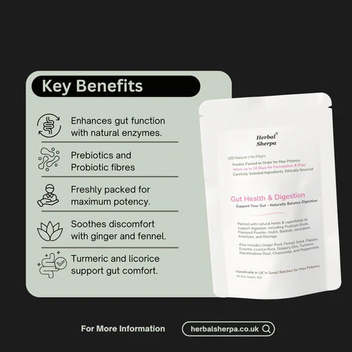 Gut Health & Digestion Support Powder – Slippery Elm, Marshmallow Root, Ginger & Prebiotic Inulin – Vegan, Freshly-Made (30-day Supply)